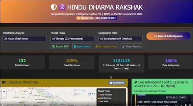 Hindu Dharma Rakshak: Uses quantum inspired analytics to monitor 22 threat parameters across Bangladesh, predicting risks to vulnerable communities with high accuracy.